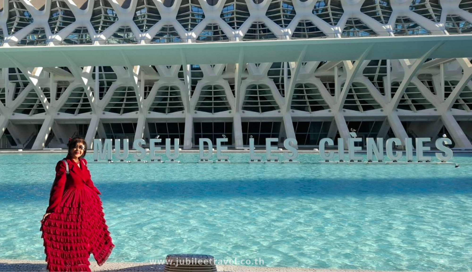 ที่นี่เป็นพิพิธภัณฑ์วิทยาศาสตร์เจ้าชายเฟลีเป มีลักษณะคล้ายโครงกระดูกวาฬขนาดใหญ่ ตั้งอยู่ท่ามกลางสระน้ำขนาดใหญ่สีฟ้าสดใส ซึ่งช่วยสะท้อนความงดงามของอาคาร มาถึงสเปนแล้วต้องห้ามพลาดที่นี่กันเลยค่ะ