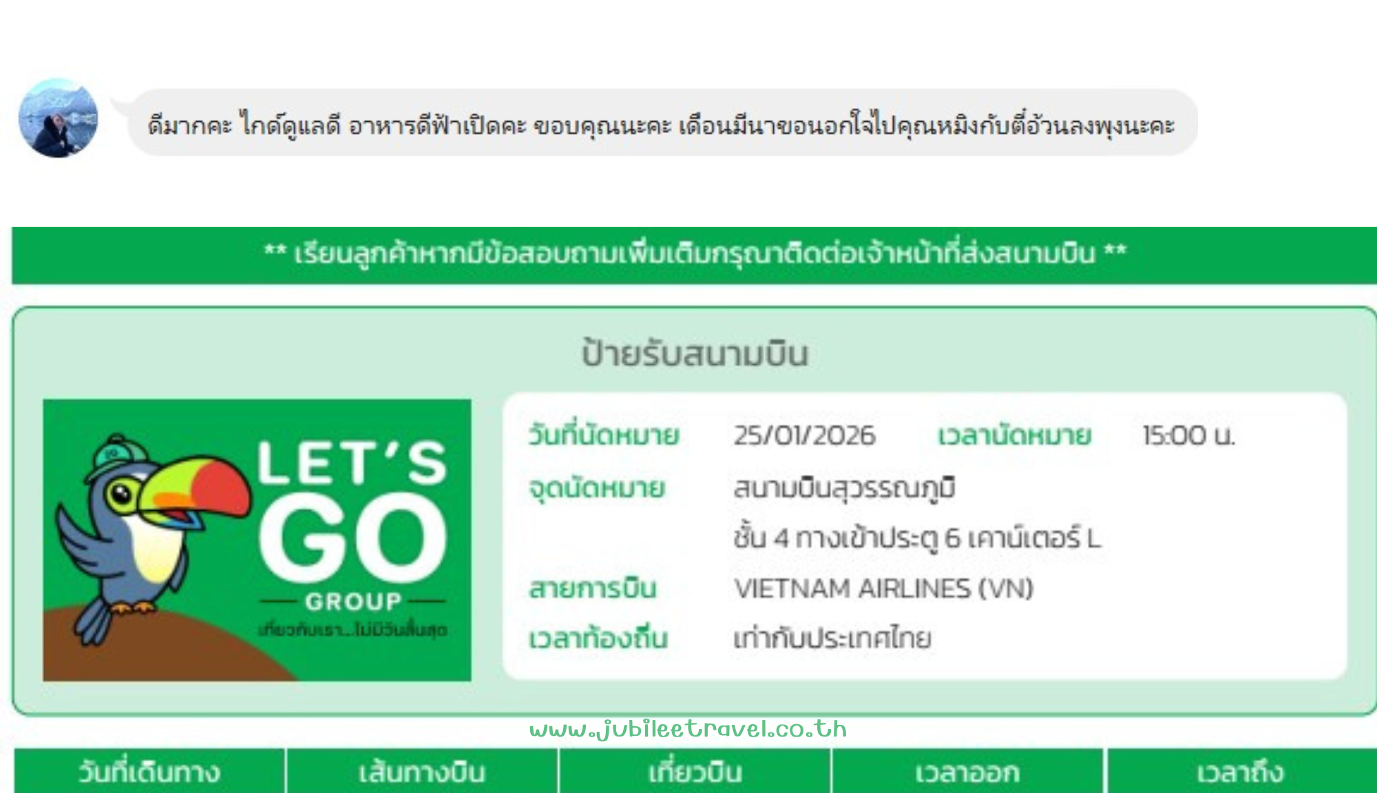 รีวิวลูกค้า:ขอขอบคุณ คุณเล็ก ทัวร์เวียดนามกลาง - ดานัง ฮอยอัน พักบานาฮิลล์ วันที่ 25-28 JAN 26