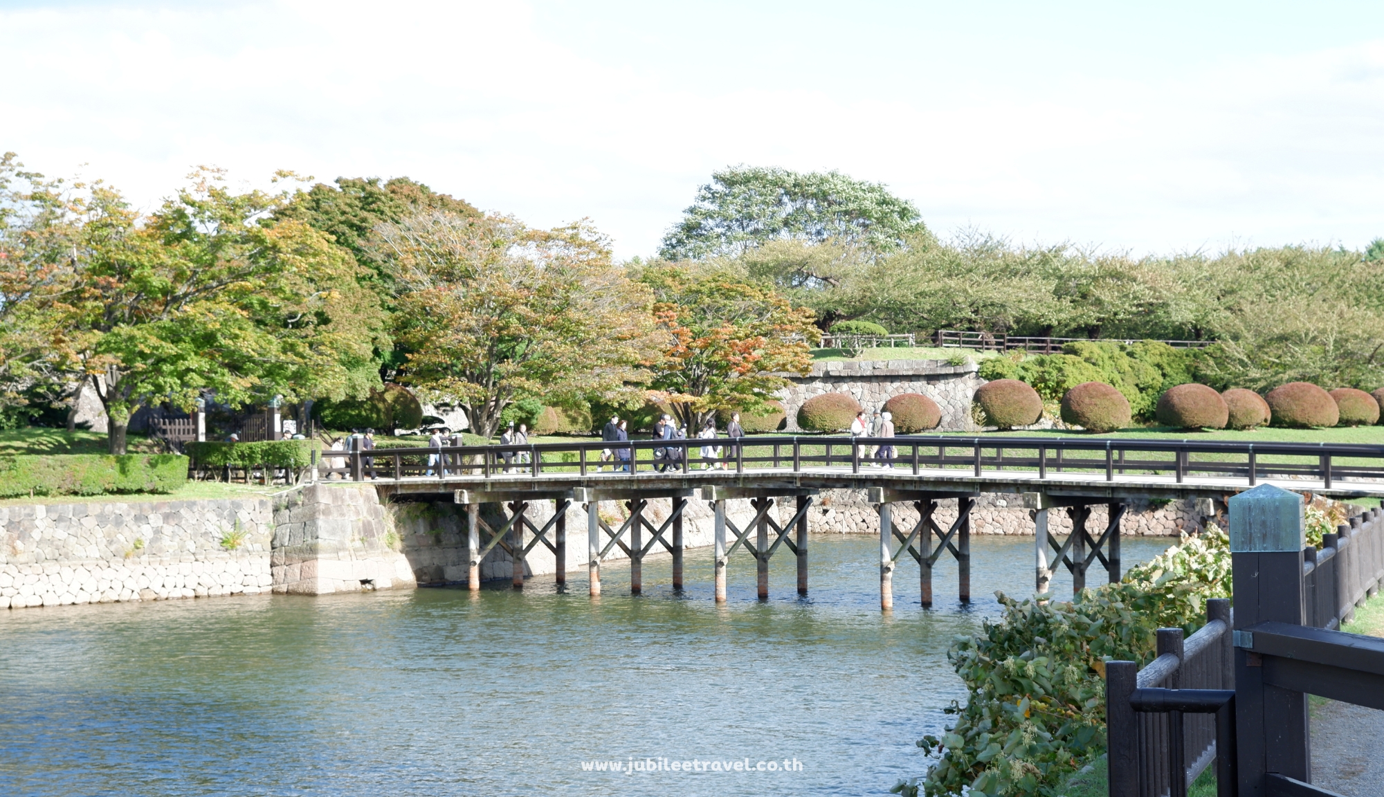 เป็นสะพานที่ใช้เดินข้ามไปยังป้อมโกเรียวคาคุ จะมีสะพานอยู่หลายจุดเพื่อใช้ข้ามร่องน้ำภายในก่อนถึงอาคาร เป็นอีกหนึ่งจุดที่ถ่ายรูปออกมาสวยมากเลยค่ะ