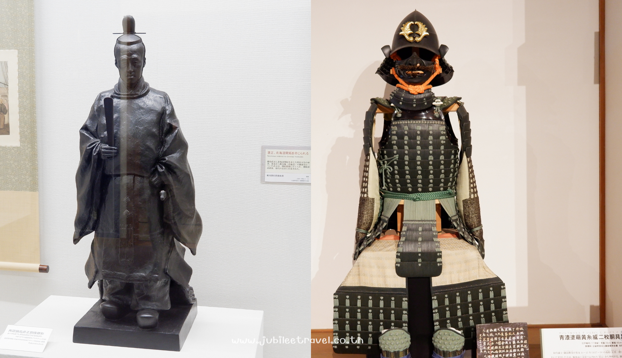มีการจัดแสดงภายในปราสาทเป็นรูปปั้นหุ่นขุนนางและเกราะซามูไร จัดแสดงชีวิต การปกครอง และอำนาจของยุคซามูไรเอาไว้ให้ดู