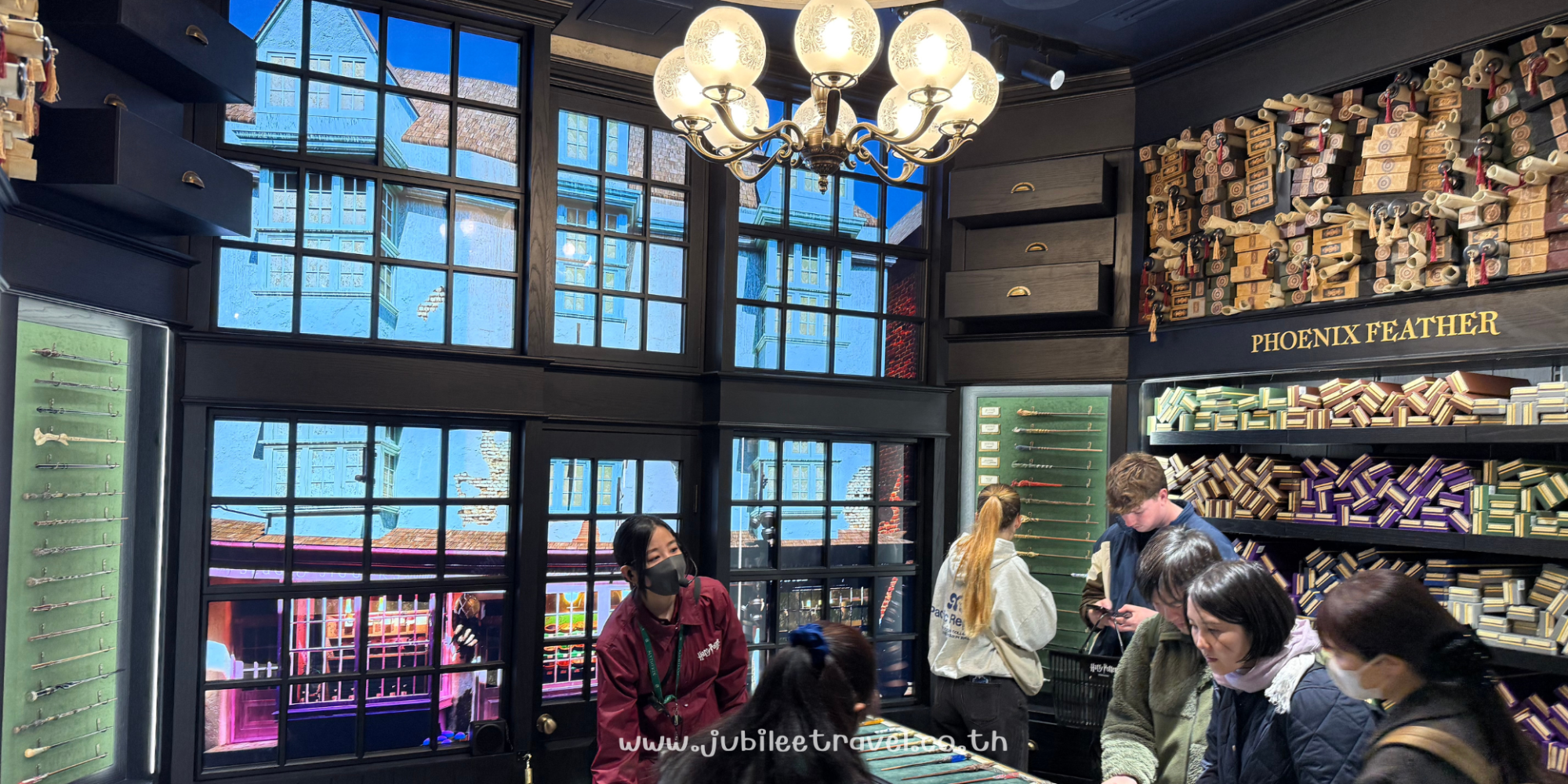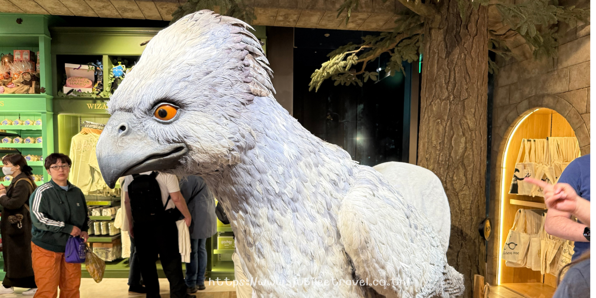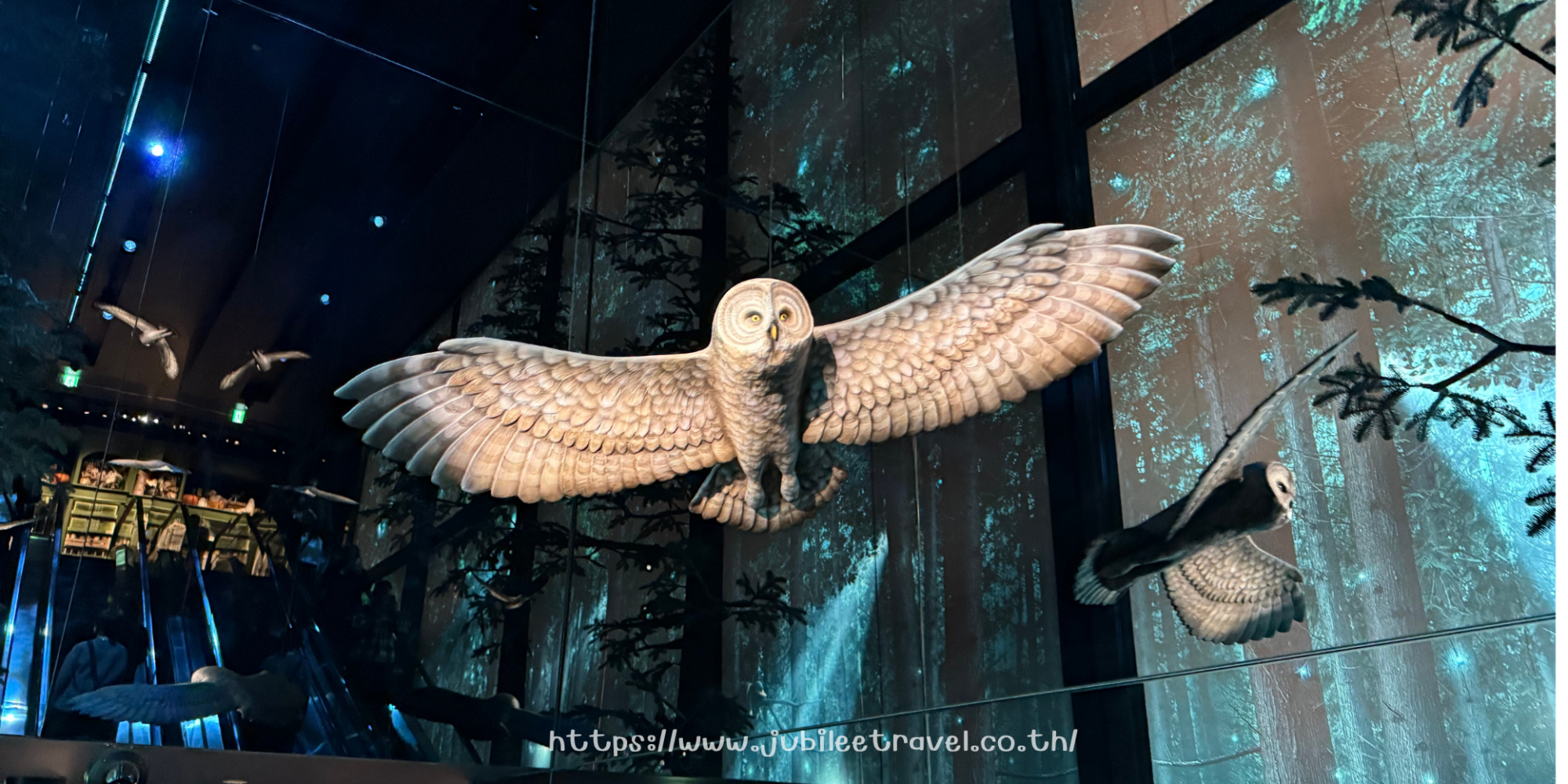บรรยากาศโลกเวทมนตร์: ภายในร้านกว้างขวางถึง 900 ตารางเมตร ตกแต่งด้วยรูปปั้นสัตว์วิเศษอย่าง Hedwig และ Buckbeak