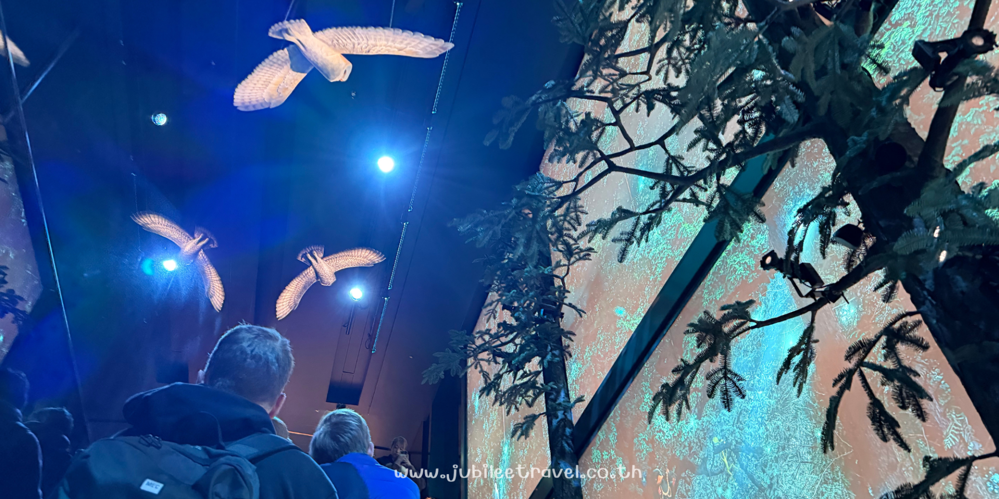 ตรงบันไดเลื่อน Hedwig Interactive (นกฮูกโต้ตอบได้): นกฮูกหิมะที่สามารถขยับหัว ปีก และส่งเสียงร้องโต้ตอบกับเราได้