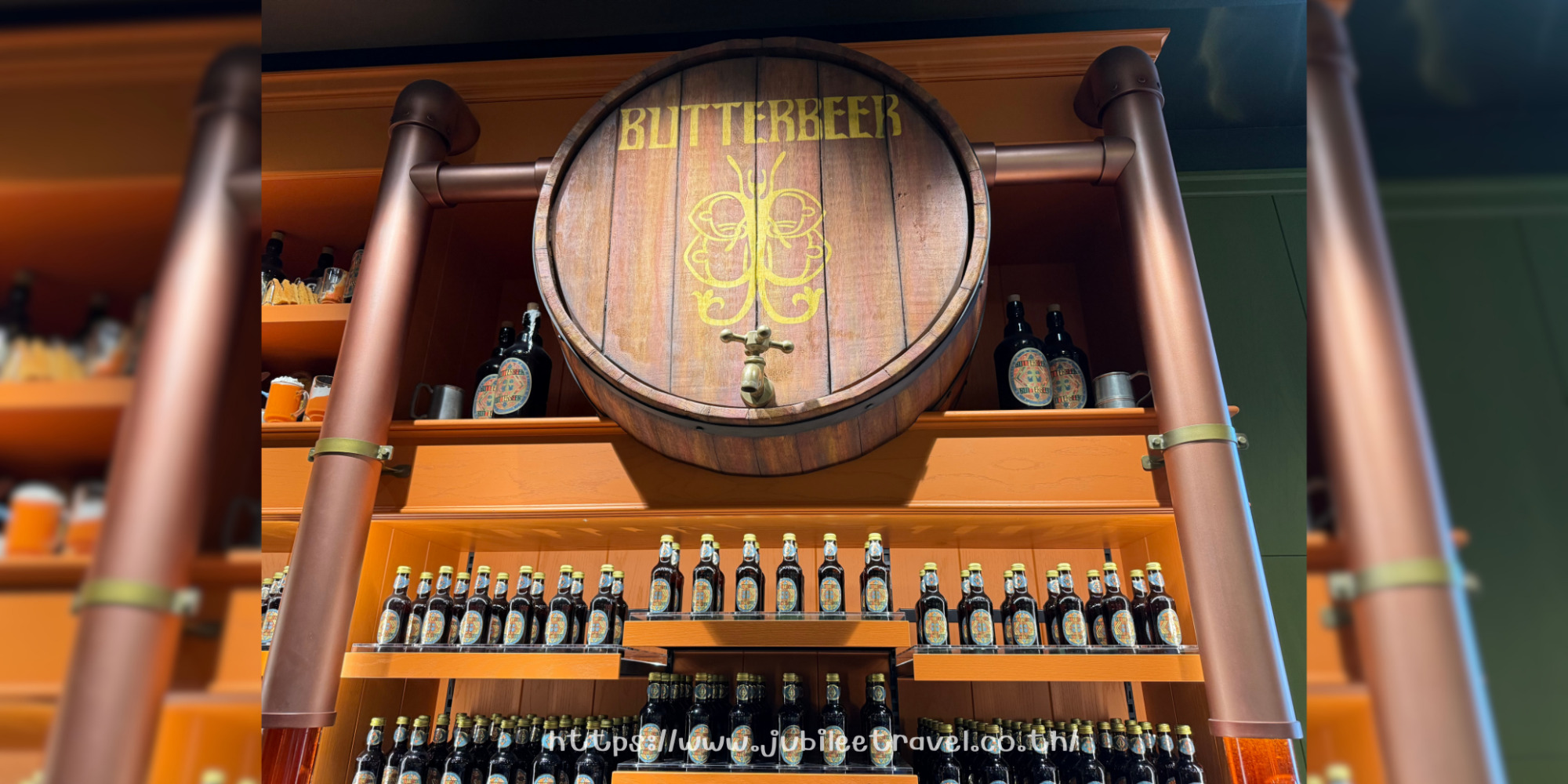 Butterbeer Bar: บาร์ขายเครื่องดื่ม บัตเตอร์เบียร์ (แบบขวด) รวมถึงไอศกรีมและเมนูพิเศษอย่าง ซาลาเปา Buckbeak รสพิซซ่า