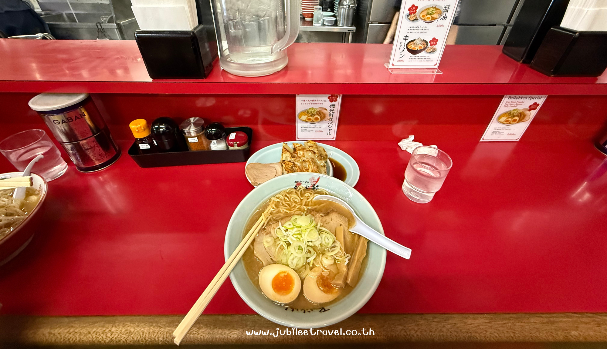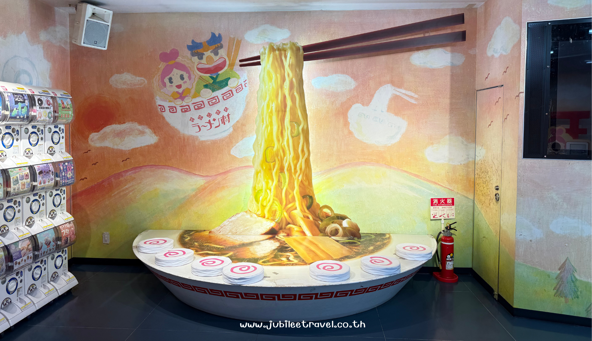 นอกจากจะมีราเมงอร่อยๆแล้ว ยังมีมุมถ่ายรูปน่ารักๆโทนสีสดใส และมีป้ายตกแต่งเกี่ยวกับเส้นราเมง เหมาะกับสายคอนเทนต์สุดๆ