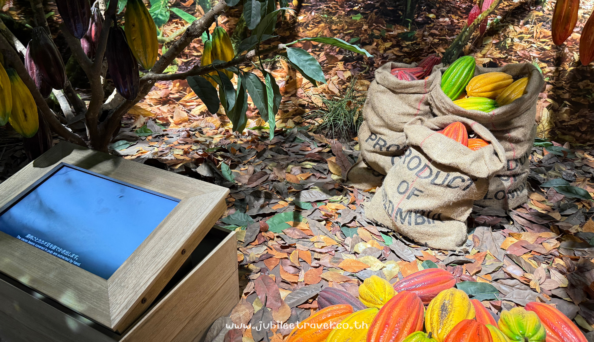 มีต้นโกโก้จำลอง ผลโกโก้ใหญ่ และจัดแสดงการปลูก เก็บเกี่ยวคาเคา พร้อมข้อมูลและกิจกรรมที่โต้ตอบให้เห็นและสัมผัสจริงๆกันเลยค่ะ