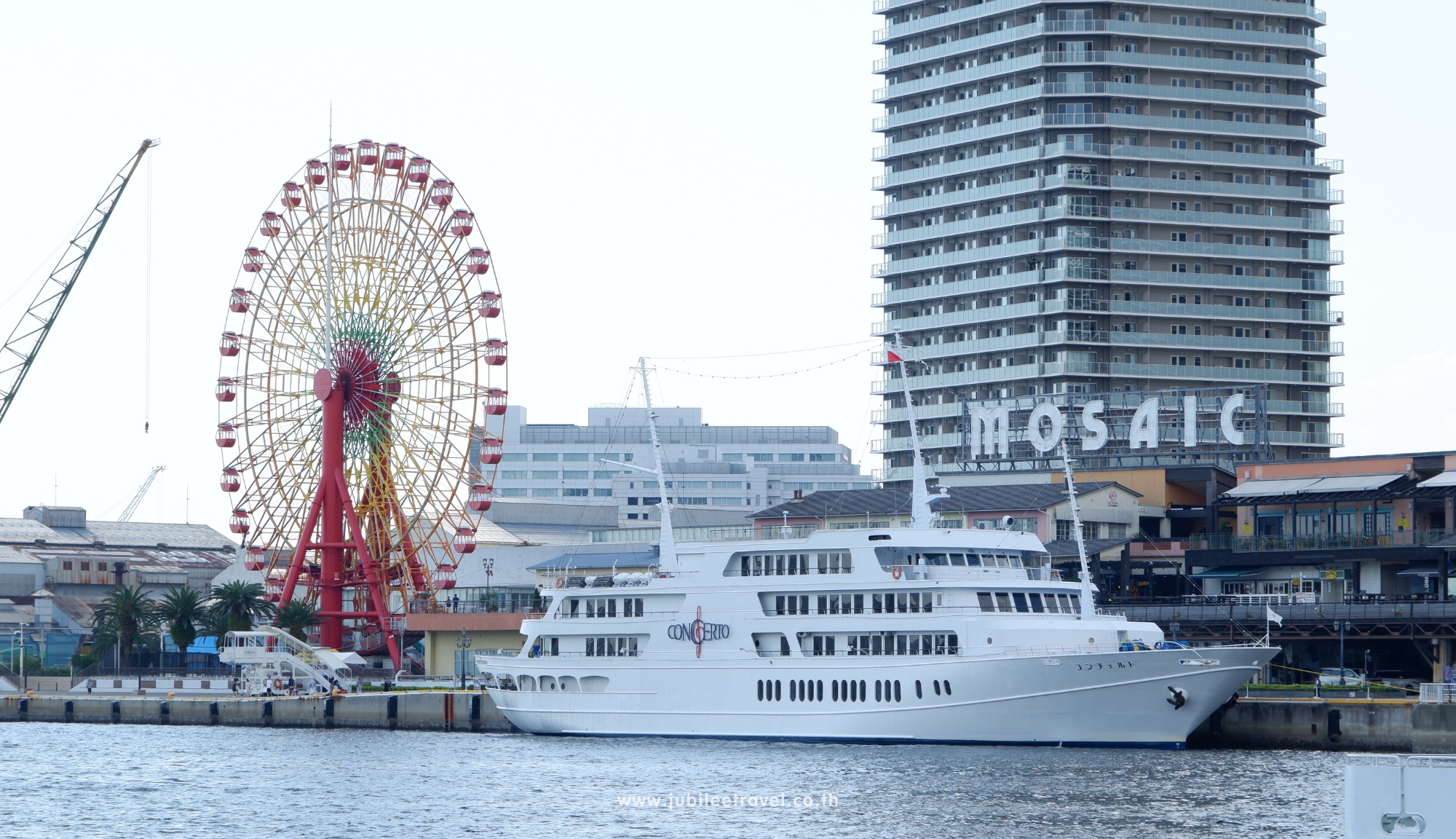 บริเวณรอบๆ มีทั้งห้าง Umie Mosaic, ร้านอาหาร คาเฟ่ริมน้ำ และโซนของฝากน่ารักๆ ให้เดินเล่นได้ทั้งวัน