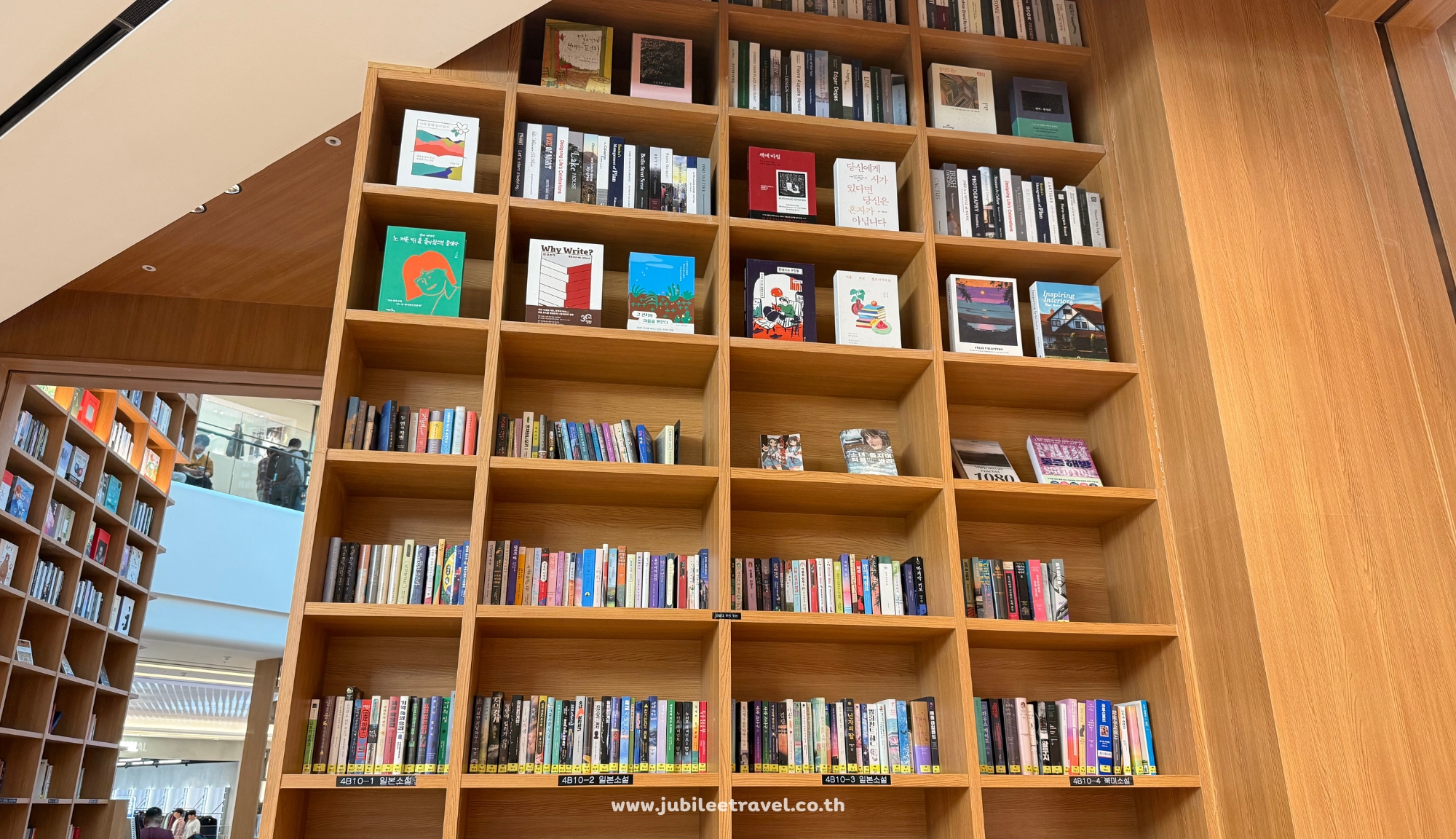 ที่ชอบมากคือ… คนเกาหลีเขาชอบมาปลีกตัวมานั่งอ่านจริงจัง เลยทำให้ฟีลของที่นี่ดู calm + cozy แบบที่หาไม่ค่อยได้ในห้างบ้านเรา ยิ่งถ้ามาช่วงบ่ายๆ แสงธรรมชาติตกลงมาพอดี มุมถ่ายรูปคือสวยไม่ไหววว