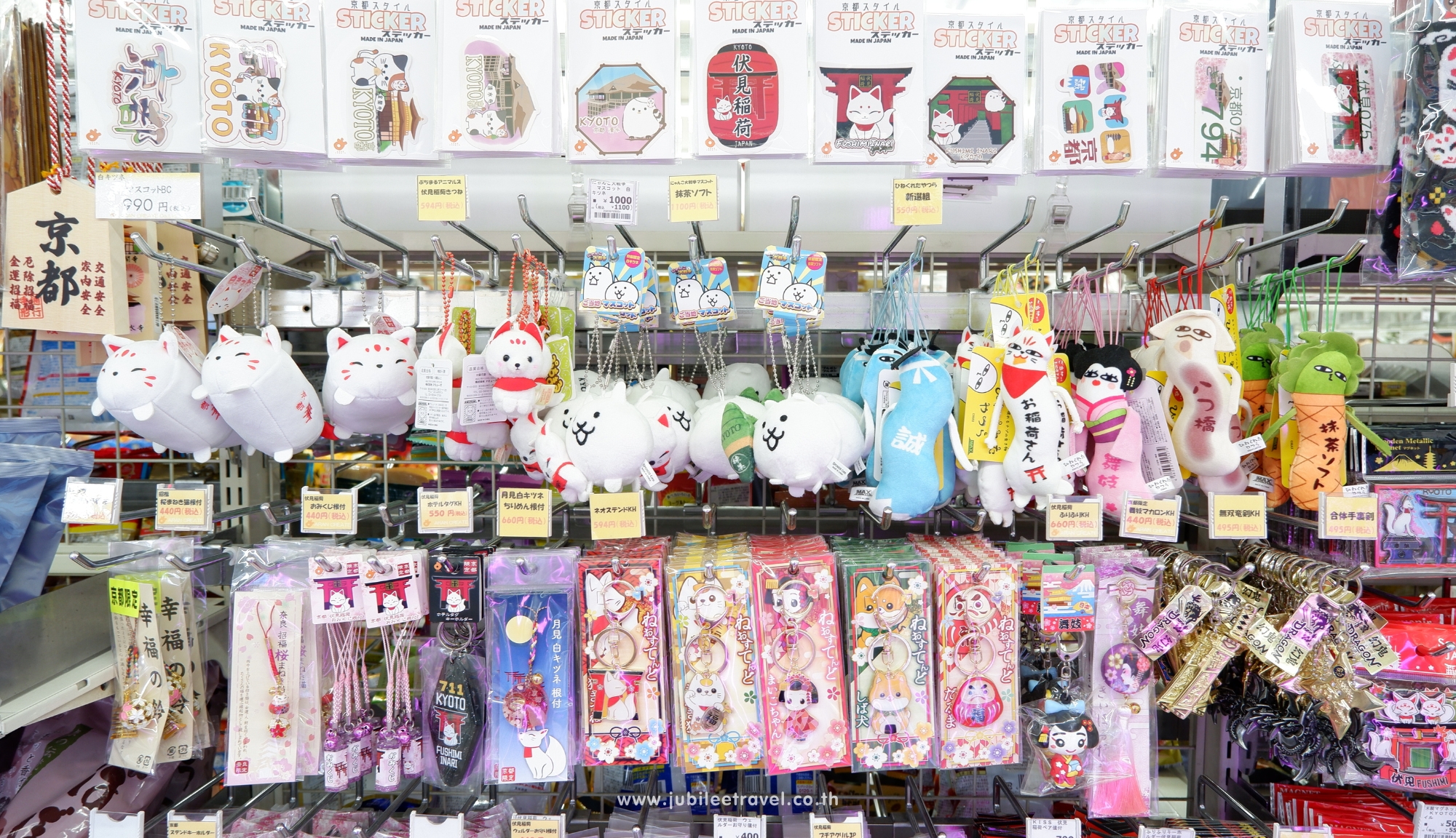ยังมีร้านขายของที่ระลึกสุดคิ้วท์ ทั้งเครื่องรางรูปจิ้งจอก โอมามอริ (お守り) พวงกุญแจ สติกเกอร์ และพัดญี่ปุ่นลายเก๋ๆ นู๋JUB เดินเพลินจนลืมเวลาเลยค่ะ