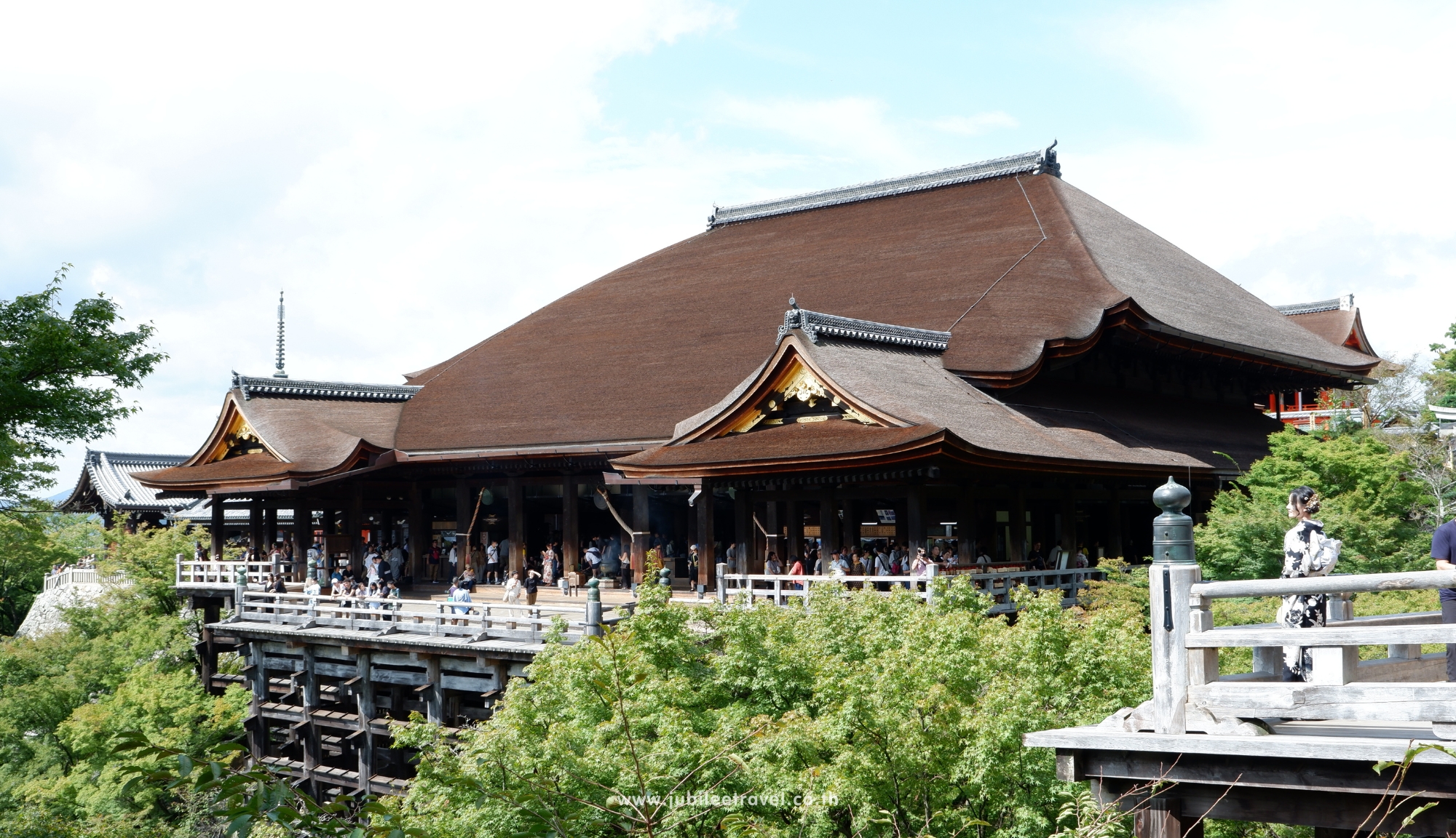 ไฮไลต์ของวัด คือ ระเบียงไม้ขนาดใหญ่ที่ยื่นออกจากเนินเขา (Kiyomizu Stage)