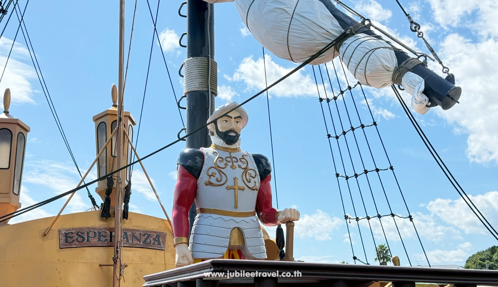 เรือลำนี้ไม่ใช่เรือธรรมดานะคะ แต่เป็นเรือที่จำลองแบบมาจากกองทัพเรือสเปนโบราณ ตัวเรือมีขนาดใหญ่ ดูอลังการตั้งแต่แรกเห็นเลย แถมภายในยังตกแต่งสไตล์ยุโรปให้ฟีลย้อนยุค เหมือนเราหลุดเข้าไปอยู่ในฉากภาพยนตร์เลยค่ะ