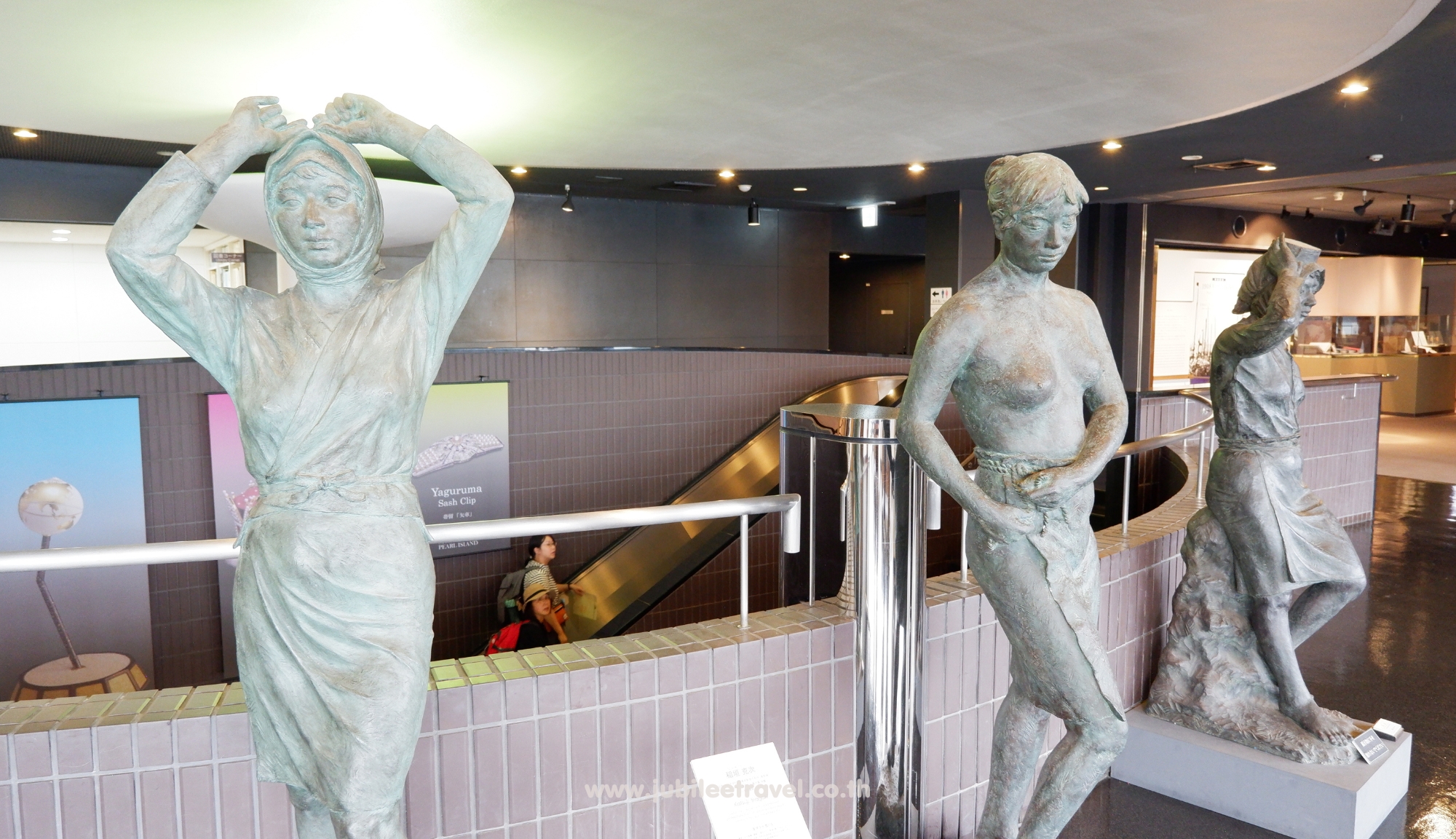 พอเดินทางมาถึงเกาะ สิ่งแรกที่สัมผัสได้คือความเงียบสงบ บรรยากาศสบายๆ พอข้ามสะพานเข้ามาก็จะเจอกับ Pearl Museum หรือพิพิธภัณฑ์มุก ที่จัดแสดงทุกอย่างตั้งแต่ประวัติการเพาะเลี้ยงมุกของ Mikimoto Kōkichi ไปจนถึงเครื่องประดับมุกสุดวิจิตรที่ใครเห็นก็ตาลุกวาว รวมถึงนู๋JUB ด้วยค่ะทุกคน