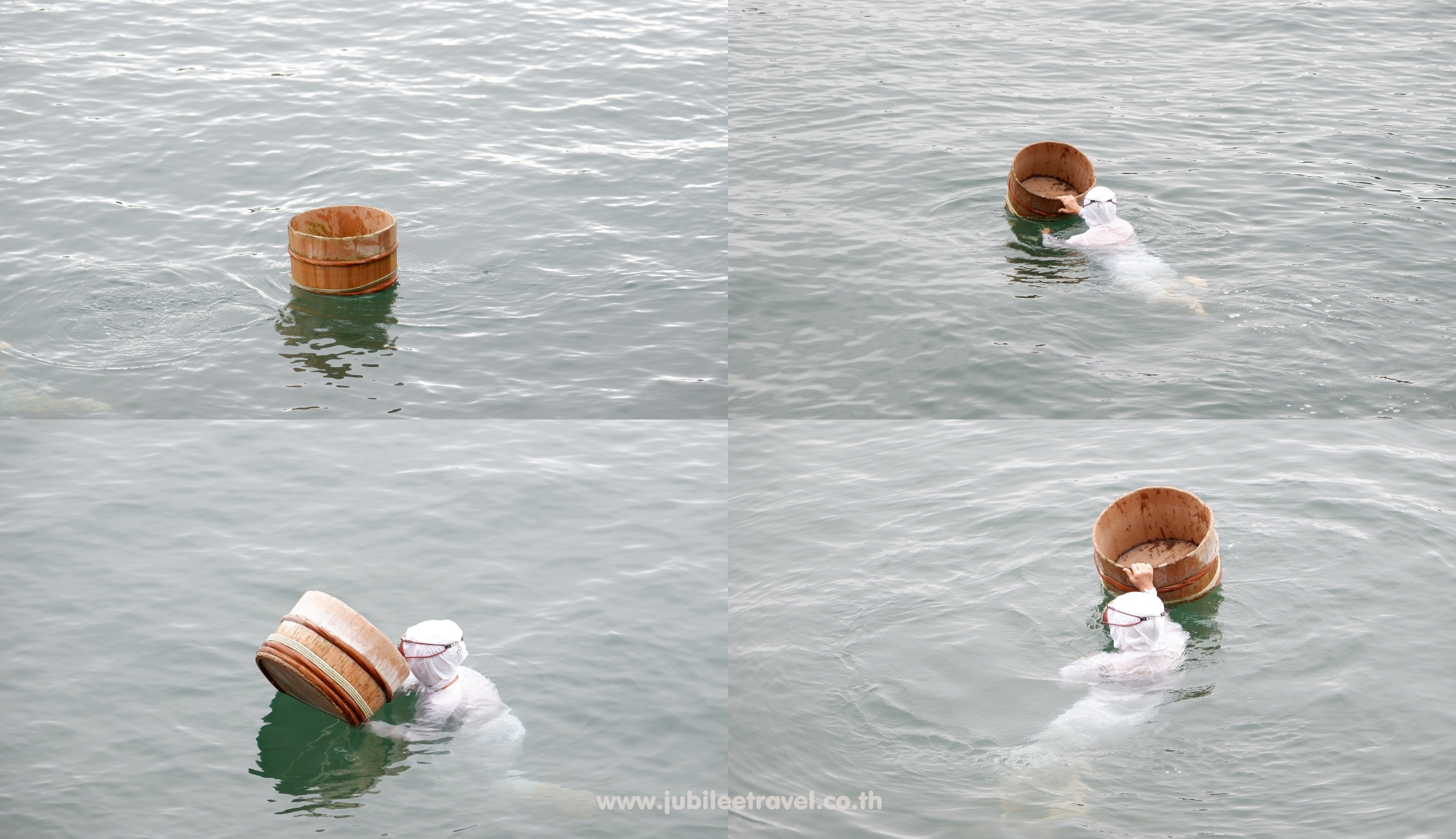 อีกหนึ่งไฮไลต์ที่ทำให้ นู๋JUB ตื่นเต้นมากก็คือ โชว์ดำน้ำของ “Ama” (สาวนักดำน้ำโบราณ) ที่สืบทอดกันมาตั้งแต่สมัยโบราณ อามะซังในชุดดำน้ำสีขาวจะโชว์วิธีงมหอยมุกให้ดูจริง ๆ เป็นโมเมนต์ที่ทั้งตื่นตาตื่นใจสุดๆ เพราะนี่คือวิถีชีวิตดั้งเดิมที่ยังถูกเก็บรักษาไว้นั่นเองค่ะ