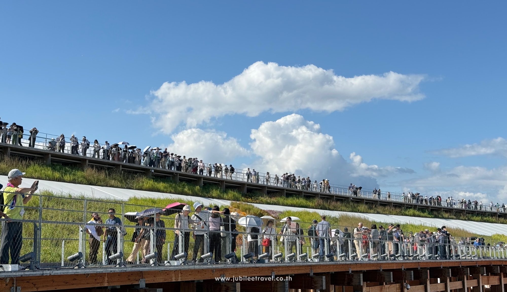 ไฮไลต์เด็ดๆ ที่ห้ามพลาดเลย The Grand Ring โครงสร้างไม้ทรงวงกลมขนาดยักษ์ที่ล้อมรอบพื้นที่หลักของงาน ความยาวกว่า 2 กิโลเมตร!! เดินชมวิวได้ทั่วเลย